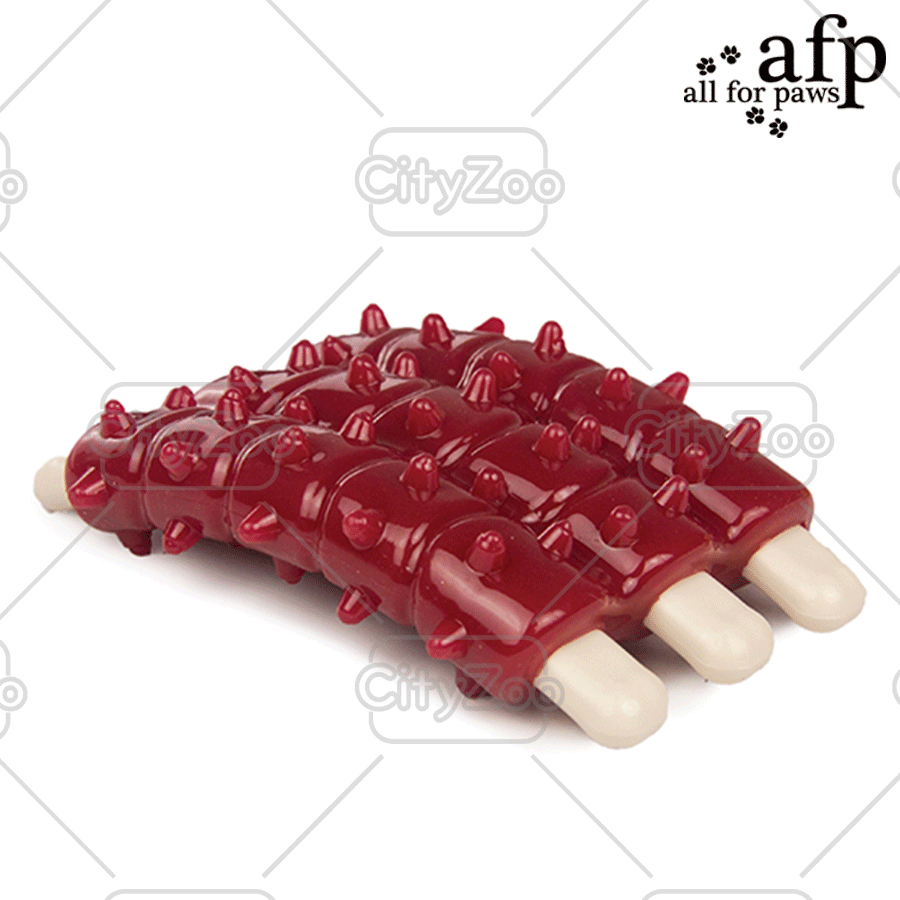 Đồ chơi sườn heo vị gà BBQ Grillers của AFP sản xuất từ nhựa cứng được thiết kế bắt mắt với chó và có hương vị hấp dẫn tự nhiên kèm với nó là tăng cường sức khỏe răng miệng cho chó. Những kẽ dọc ngang và cạnh trên đồ chơi sẽ góp phần lấy đi những mảng bám trên răng chó trong quá trình chơi đùa.