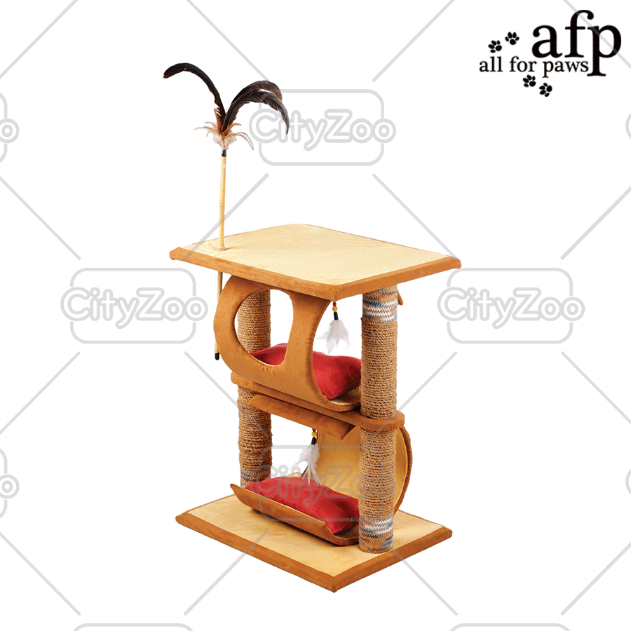 Cây mèo leo Elan có 2 chỗ nằm êm ái và sang trọng như cung điện thu nhỏ dành cho mèo. Ngoài ra, 2 cột trụ hai bên cũng có thể là nơi mèo cào móng.