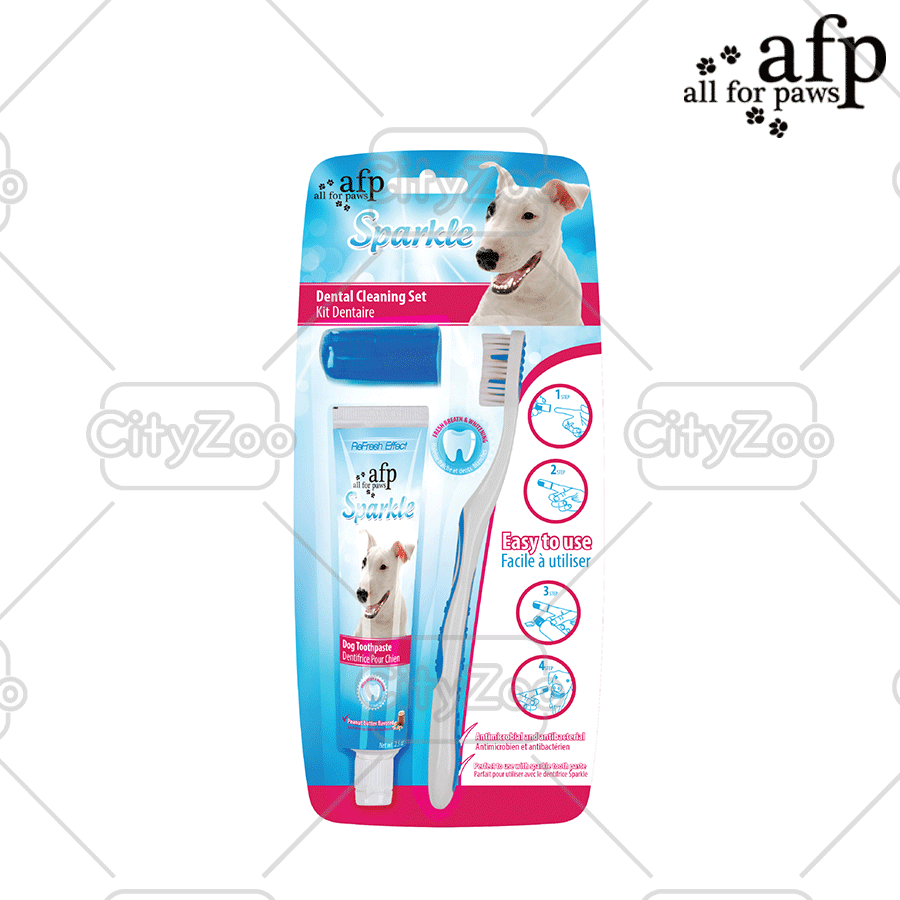 Combo bao gồm một bàn chải và một cây kem đánh răng chuyên dụng cho chó.