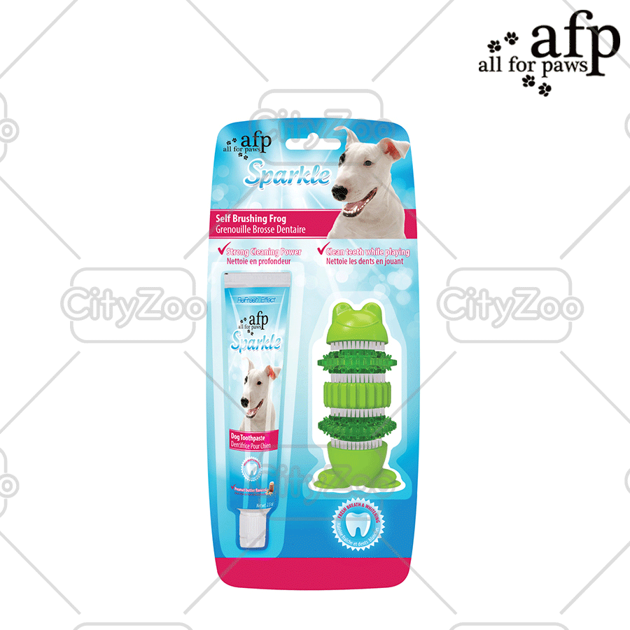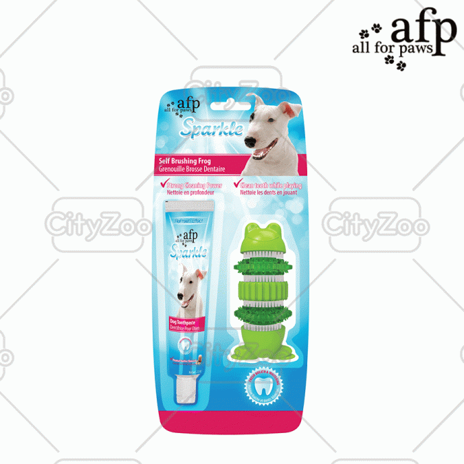 Kem đánh răng AFP Sparkle giúp chó vừa có thể vui chơi vừa có thể loại bỏ vôi răng với 2 loại bàn chải vệ sinh răng miệng tối ưu.