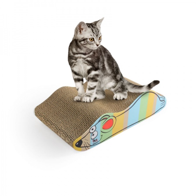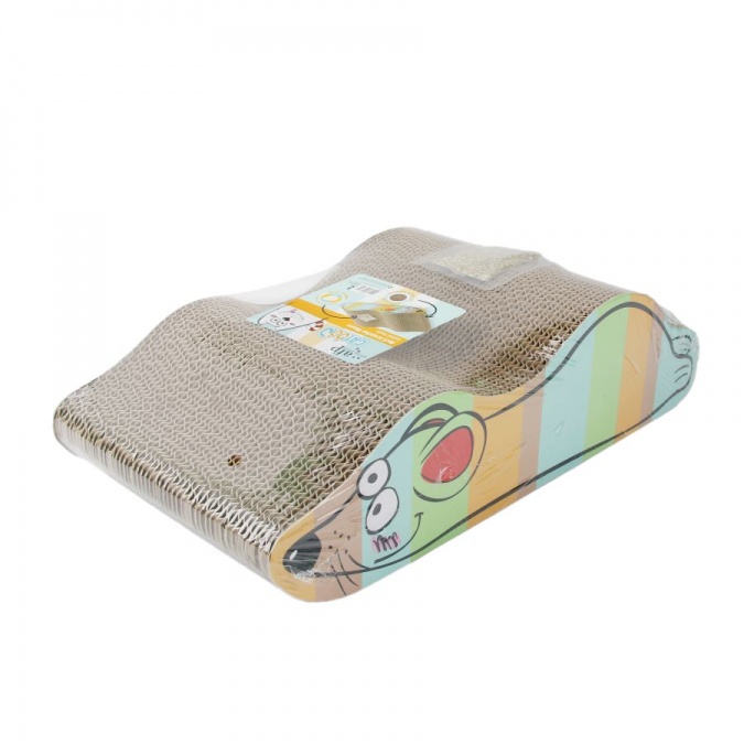 Bàn cào móng sáng tạo, thiết kế hình chuột vui nhộn, ngộ nghĩnh, được làm bằng bìa carton. Giúp thú cưng có một khoảng thời gian vui vẻ nghịch ngợm. Kèm theo một gói cỏ bạc hà mèo cáo cấp giúp mèo thêm thích thú với đồ chơi.