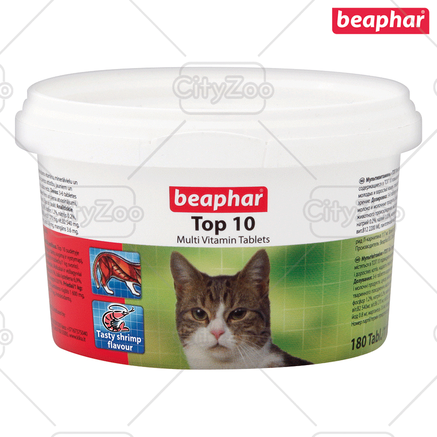 Thực phẩm bổ sung cho mèo. Beaphar TOP 10 chứa các vitamin, khoáng chất và nguyên tố vi lượng thiết yếu giúp nâng cao sức khỏe và tăng cường thể chất của mèo.TOP 10 thúc đẩy sự phát triển tự nhiên của xương khớp, răng hàm, bảo vệ da lông và đôi mắt sáng ngời. Bổ sung Taurine cho mèo một trái tim khỏe mạnh.