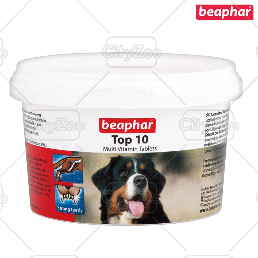 Beaphar Top 10 là thức ăn bổ sung dinh dưỡng cho chó, chứa các vitamin cần thiết, khoáng chất và các nguyên tố vi lượng, giúp tăng cường sinh lực và tăng cường tình trạng thể chất, khuyến khích sự phát triển tự nhiên của xương và răng.