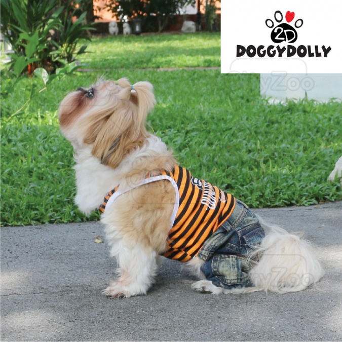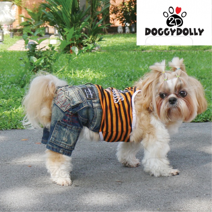 DOGGYDOLLY Casual - Bộ quần Jean và áo Maillot cam cho chó