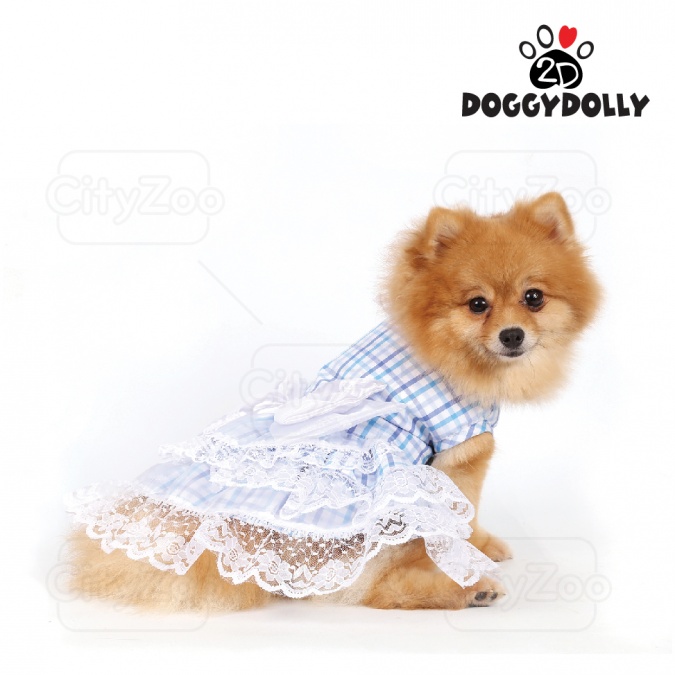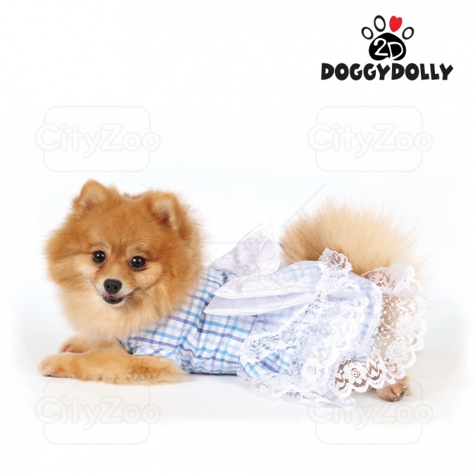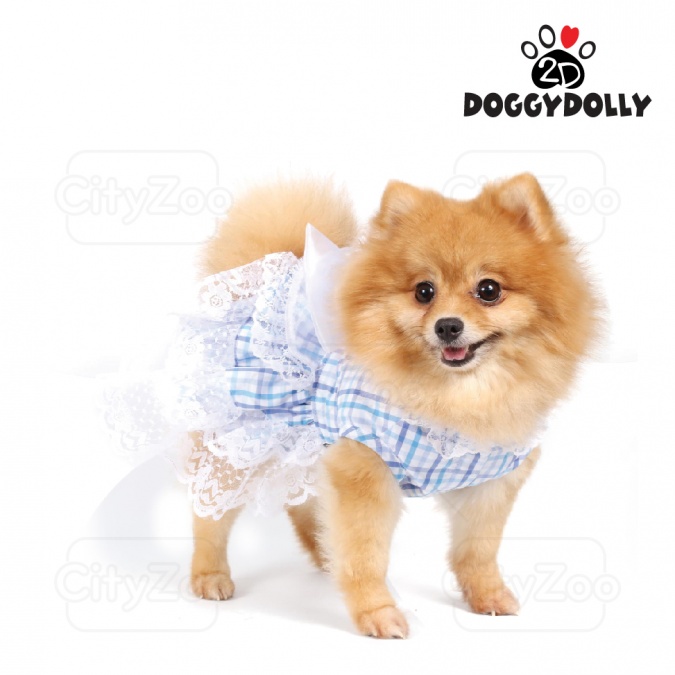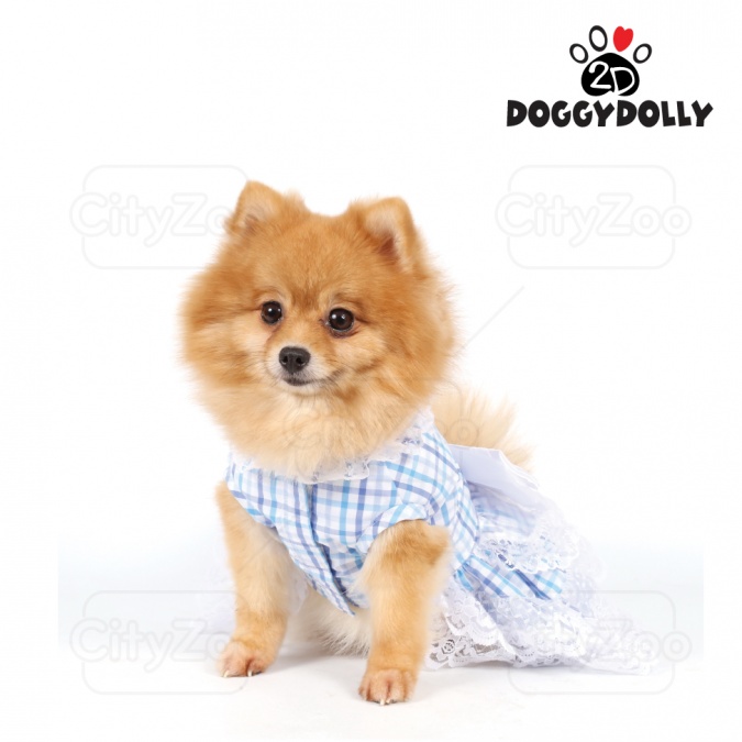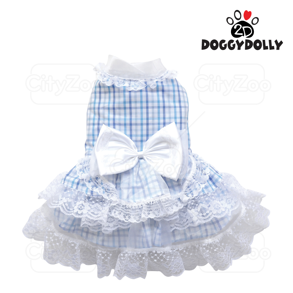 DOGGYDOLLY Dress - Đầm caro xanh nơ trắng