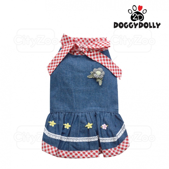 DOGGYDOLLY Dress - Đầm Jean caro đỏ