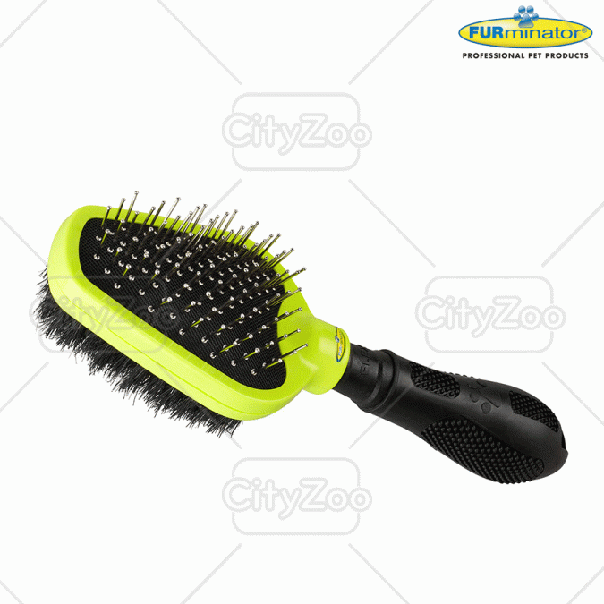 Sản phẩm được thiết kế hai mặt phù hợp với chó lông mượt và lông ngắn giúp loại bỏ lông rụng và bụi bẩn trên lông.