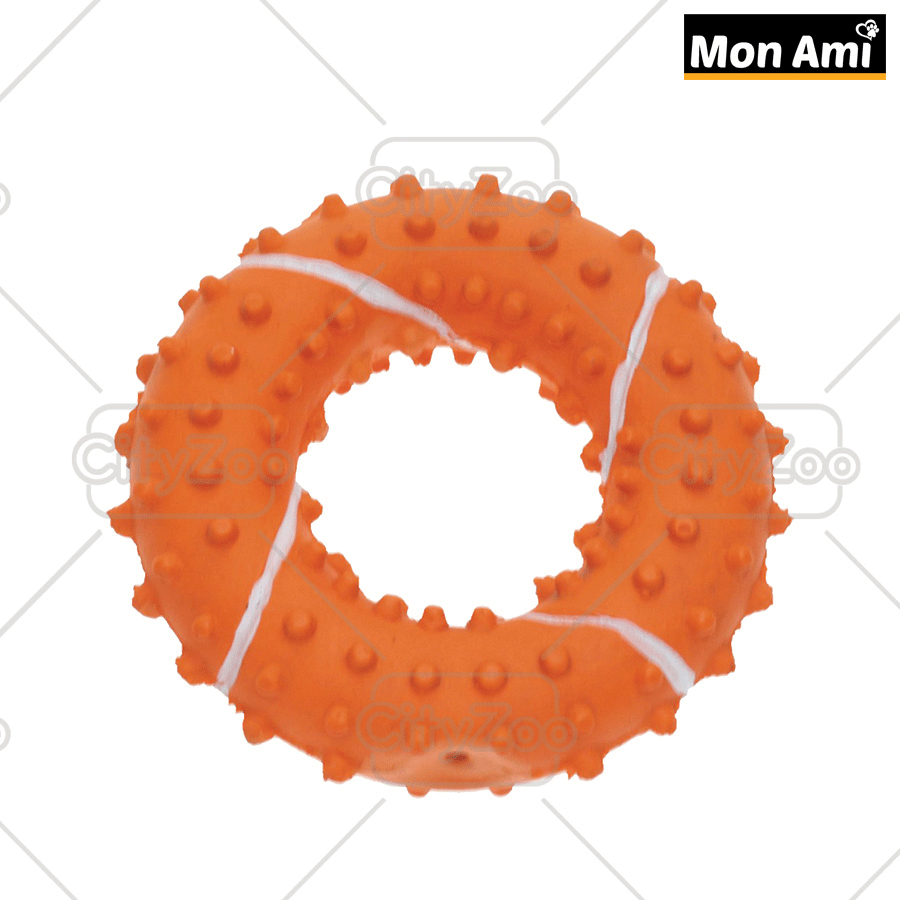 Sản phẩm đồ chơi cao su vòng tròn gai được sản xuất từ cao su tự nhiên với độ cứng vừa phải. Sản phẩm có gai giúp tăng cường sức khỏe răng miệng của chó. Đặc trưng sản phẩm đàn hồi, co giãn nên rất thu hút chó. Đây vừa là đồ chơi, vừa là sản phẩm cải thiện sức khỏe răng miệng của chó.