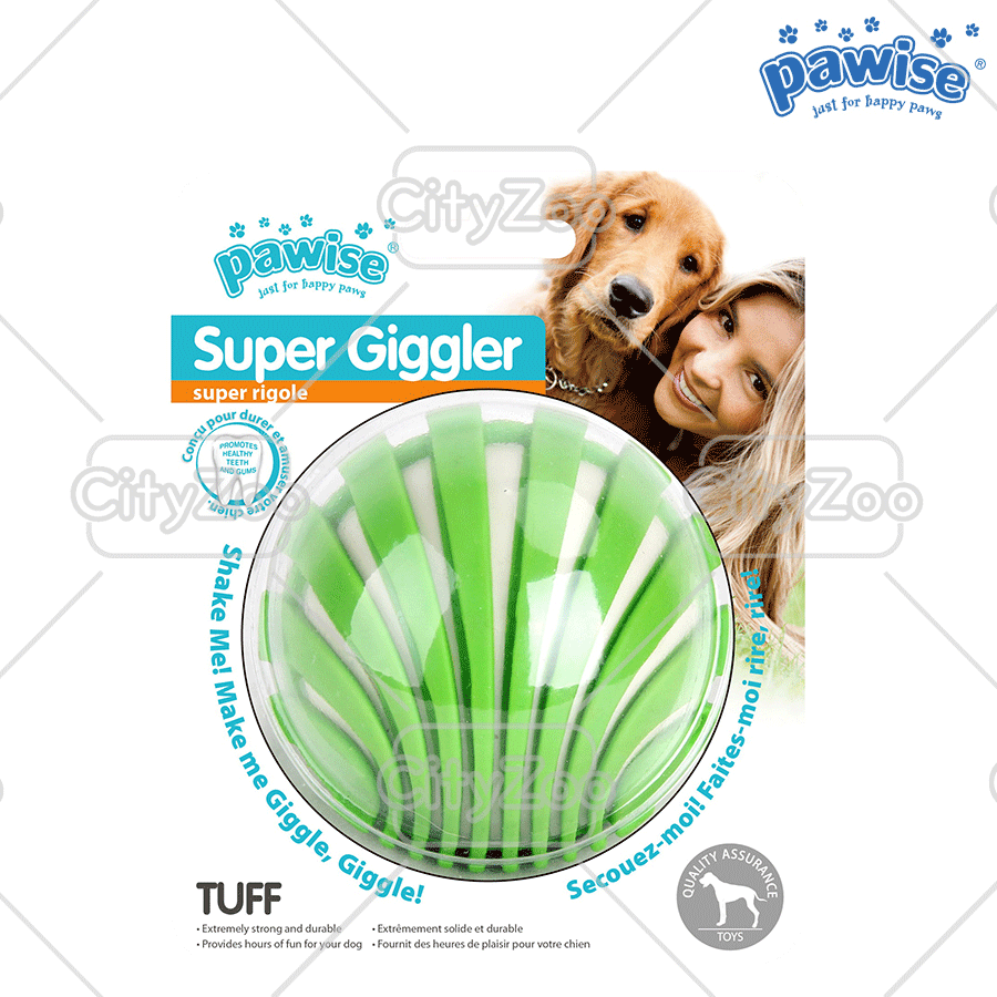 Đồ chơi bóng Giggie được sản xuất từ nguyên liệu cao su nguyên chất có nhiều màu sắc. Bóng có khả năng tâng kỳ lạ làm chó thích thú đuổi theo.