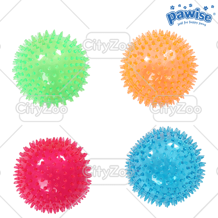 Sản phẩm bóng đồ chơi cho chó Pawise Play được sản xuất từ nguyên liệu cao su nguyên chất có đường kính 8cm, độ nẩy cao theo quỹ đạo khó đoán nhờ có lớp gai bên ngoài và cao su chất lượng cao. Sản phẩm bóng có 4 màu: đỏ, cam, xanh dương, xanh lá; đều là những màu kích thích chó mèo vui chơi giải trí quên ngày tháng.