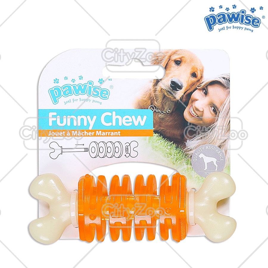 Đồ chơi làm sạch răng Pawise Play được sản xuất từ nhựa và cao su tự nhiên an toàn cho chó, sản phẩm có chức năng loại bỏ vôi răng và tăng cường sức khỏe răng miệng, góp phần phòng tránh một số bệnh như nha chu ở chó