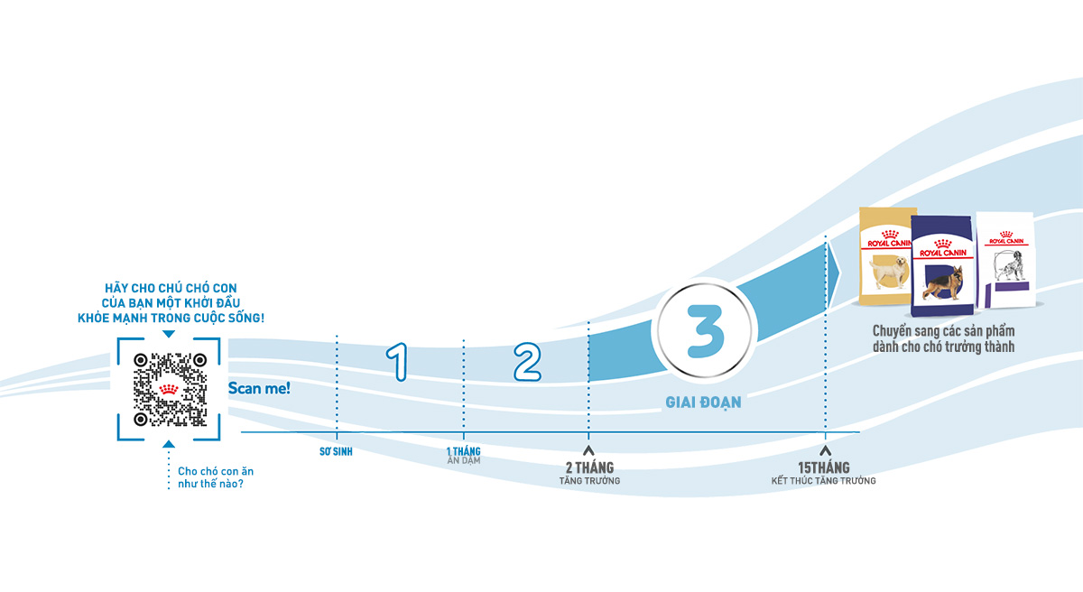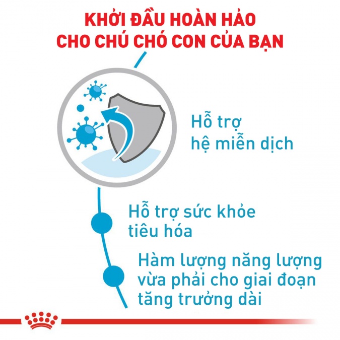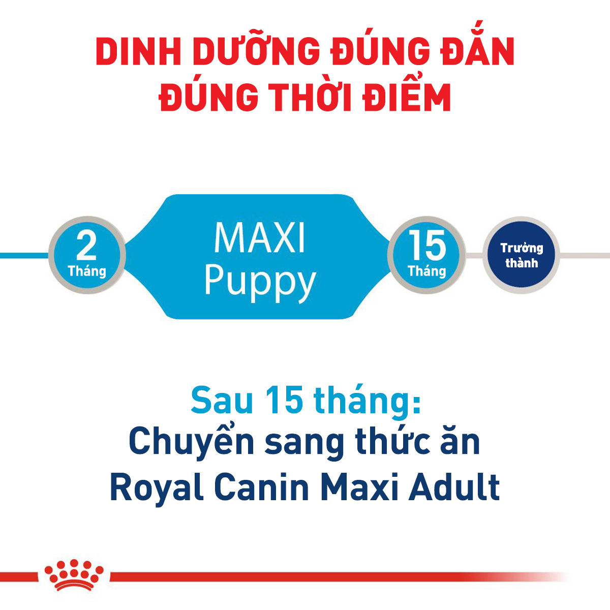 Royal Canin chú trọng vào dinh dưỡng của từng con chó, vì thế đã nghiên cứu và sản xuất thức ăn cho chó dòng lớn (Maxi - cân nặng tối đa trên 25 kg) ở độ tuổi từ 2 - 15 tháng (Puppy) cung cấp đủ dưỡng chất cân bằng, giúp chó phát triển toàn diện.