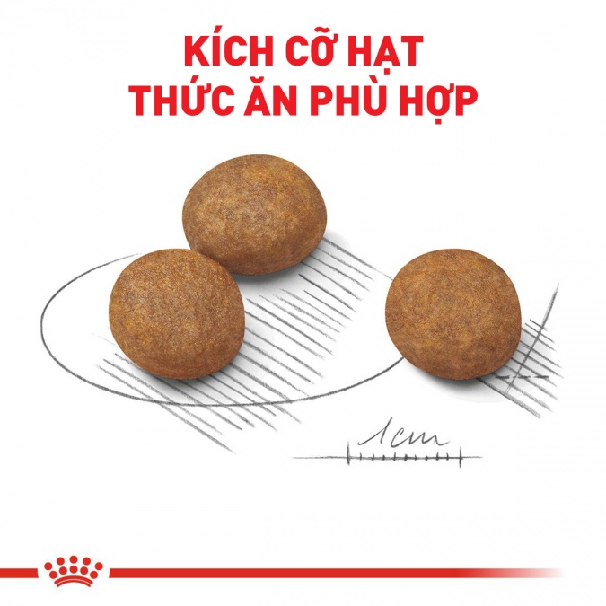 Hạt được thiết kế đặc biệt cho giống chó size Maxi để khuyến khích nhai, từ đó giảm công việc cho hệ tiêu hóa