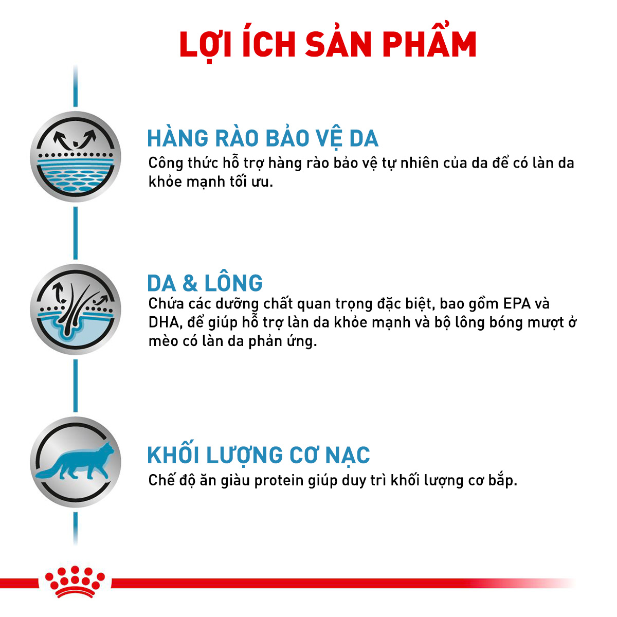 Thành phần dinh dưỡng trong ROYAL CANIN Skin & Coat thức ăn cho mèo viêm da và rụng lông (Ảnh: www.cityzoo.vn)
