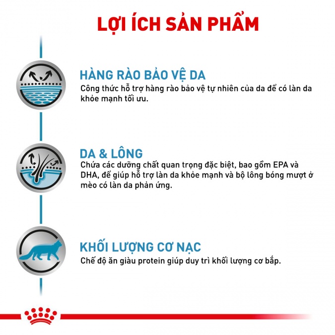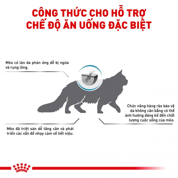 Khẩu phần ăn thực phẩm chức năng ROYAL CANIN Skin & Coat thức ăn cho mèo viêm da và rụng lông(Ảnh: www.cityzoo.vn)