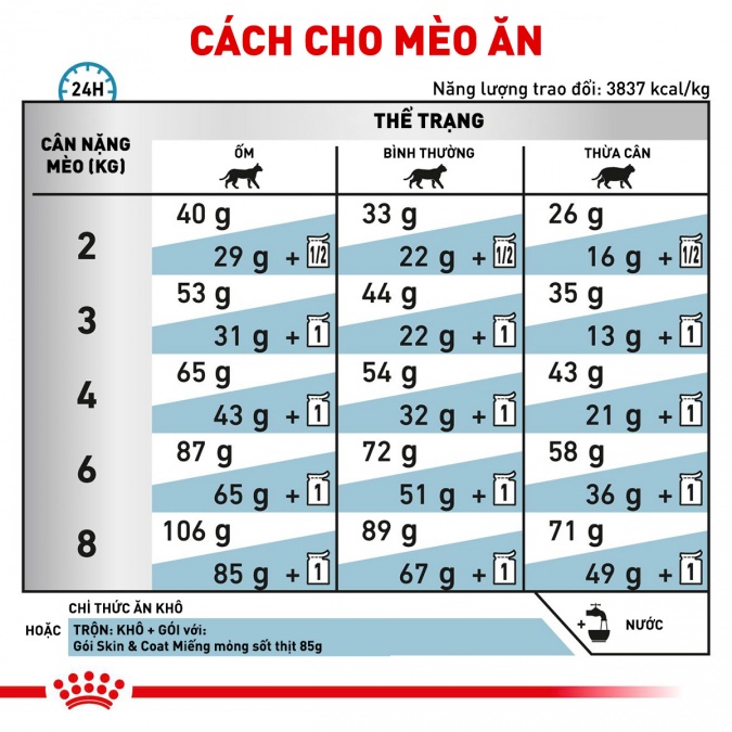 Khẩu phần ăn kết hợp ROYAL CANIN Skin & Coat thức ăn cho mèo viêm da và rụng lông(Ảnh: www.cityzoo.vn)