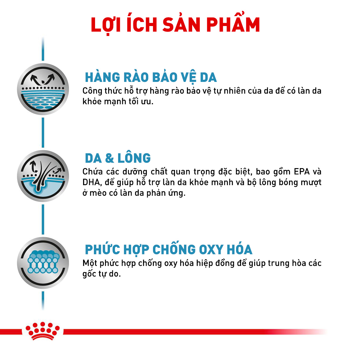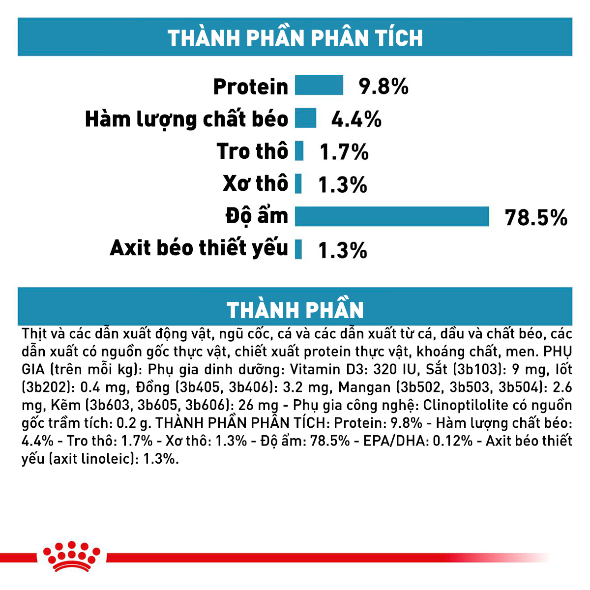 Thành phần dinh dưỡng trong ROYAL CANIN Skin & Coat Wet thức ăn cho mèo viêm da và rụng lông (Ảnh: www.cityzoo.vn)