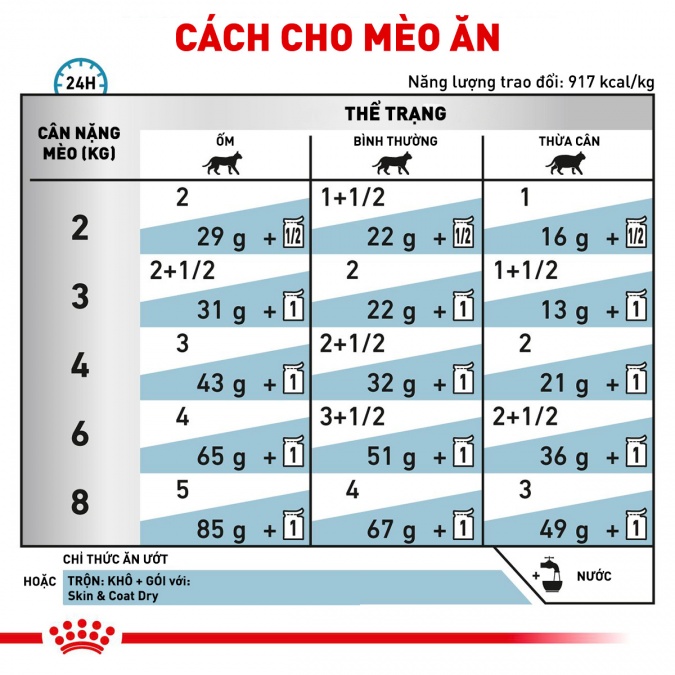 Khẩu phần ăn kết hợp ROYAL CANIN Skin & Coat thức ăn cho mèo viêm da và rụng lông(Ảnh: www.cityzoo.vn)