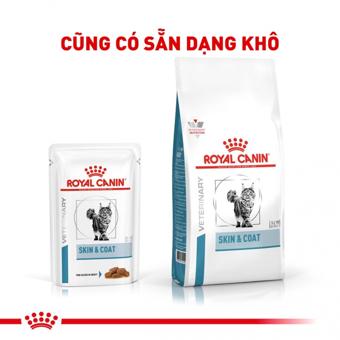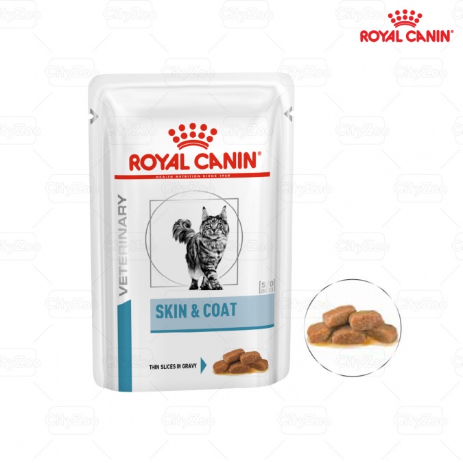 Khẩu phần ăn thực phẩm chức năng ROYAL CANIN Skin & Coat Wet thức ăn cho mèo viêm da và rụng lông(Ảnh: www.cityzoo.vn)