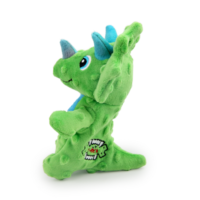 Đồ chơi hình dạng khủng long Triceratops có thể phát ra tiếng kêu, chất vải dày dặn giúp tăng độ bền cho đồ chơi. Là món đồ yêu thích để gặm dành cho các chú cún.
