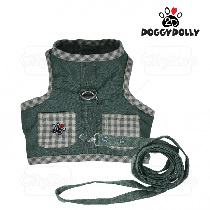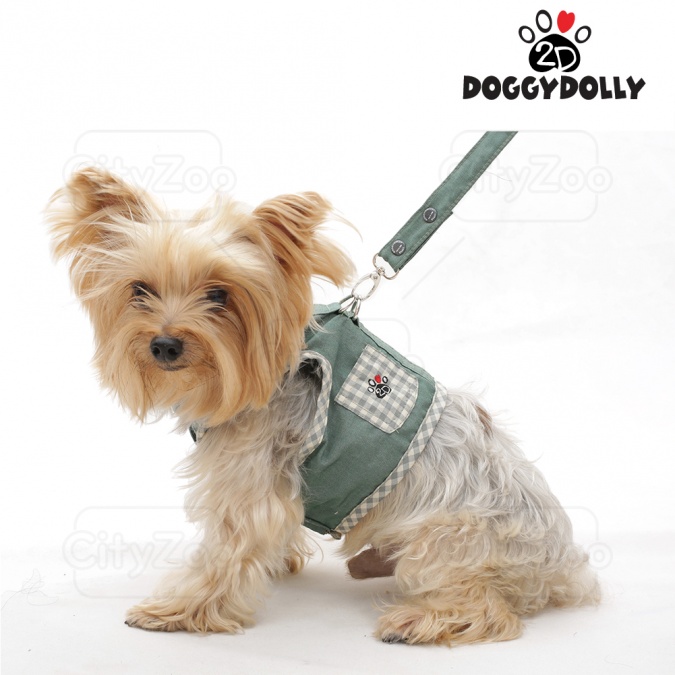 DOGGYDOLLY Body Harness - Yếm caro xám xanh rêu